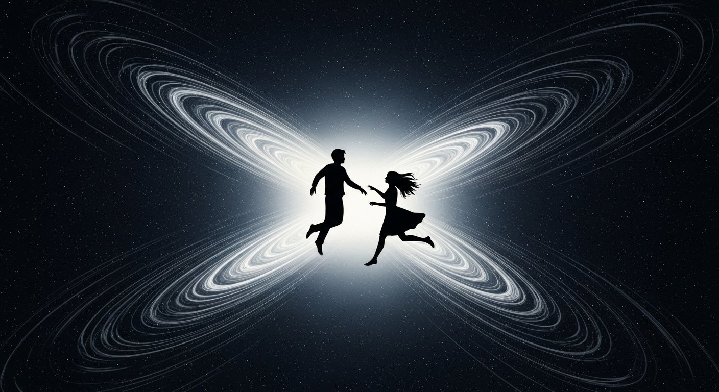 Они стояли на мосту, наблюдая за первым снегом. Снежинки кружились в свете фонарей, медленно опускаясь на тёмную воду реки.— В измерении К-17 снежинки танцуют под музыку человеческих эмоций, — произнёс…