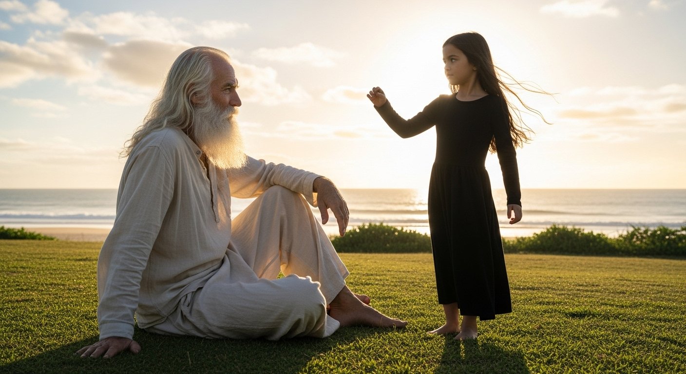 Это был старик. Но не дряхлый, не согбенный. Он был высок, прям, одет в простую, холщовую рубаху, подпоясанную верёвкой. Его длинная седая борода, казалось, хранила в себе пыльцу всех цветов…